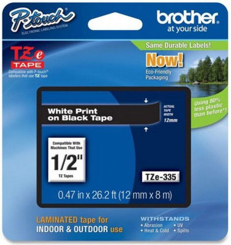 Feliratozógép szalag, 12 mm x 8 m, BROTHER, "TZe-335" fekete-fehér